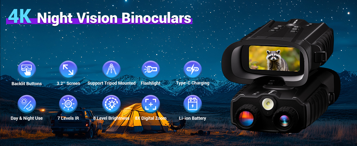 Featuring a 3.2-inch HD display with 4K resolution, this infrared binoculars delivers sharp, detailed images, ensuring you never miss a moment of action.