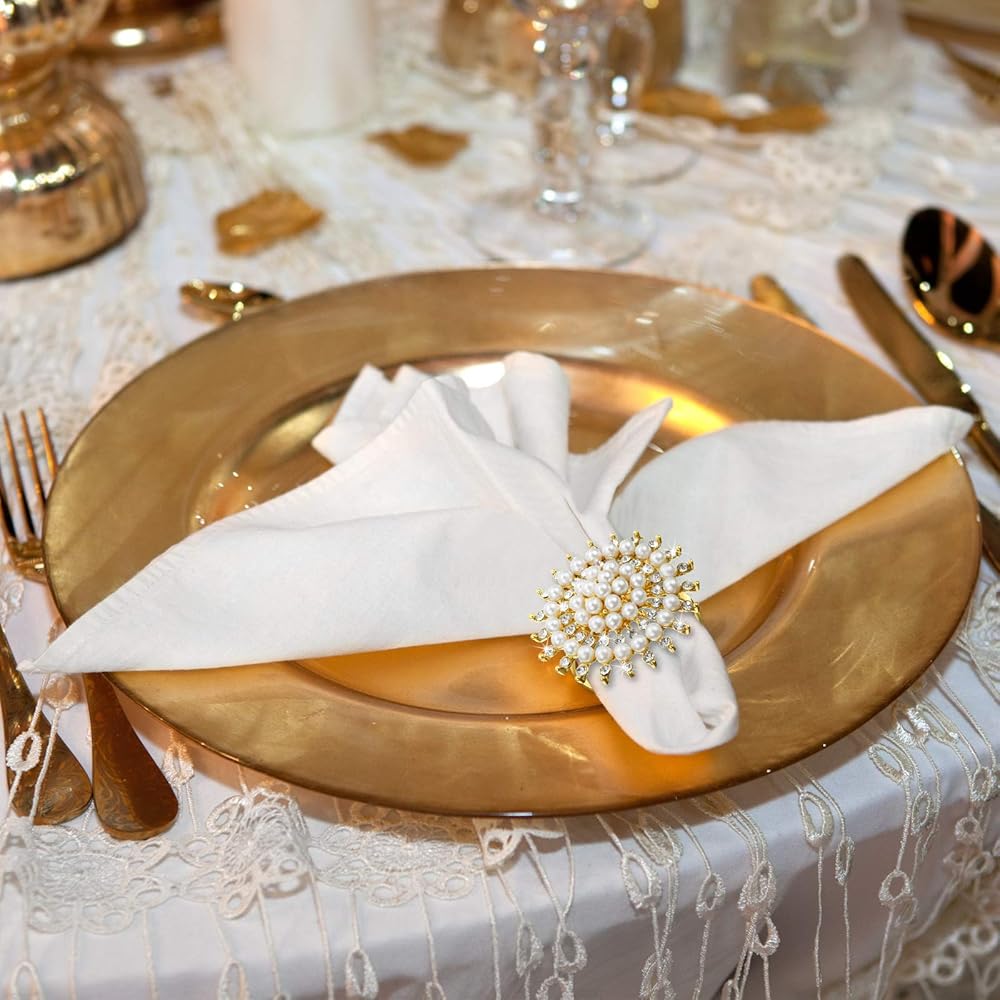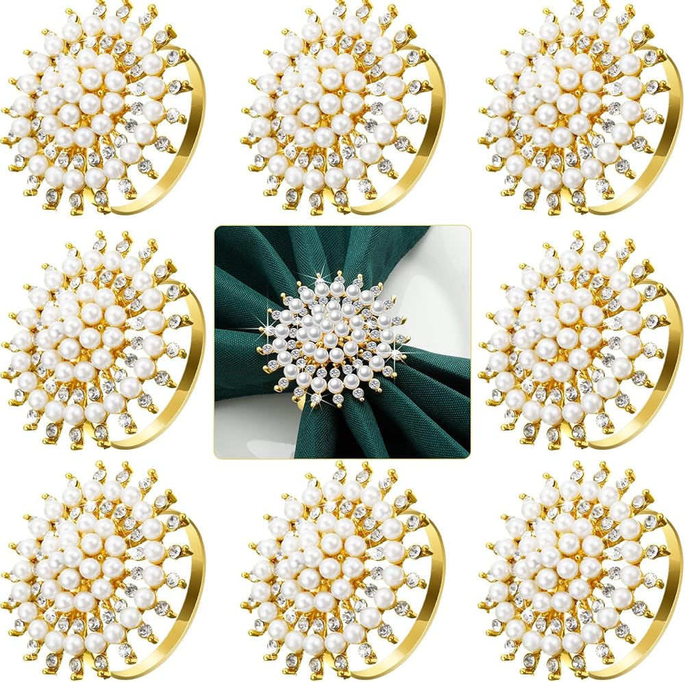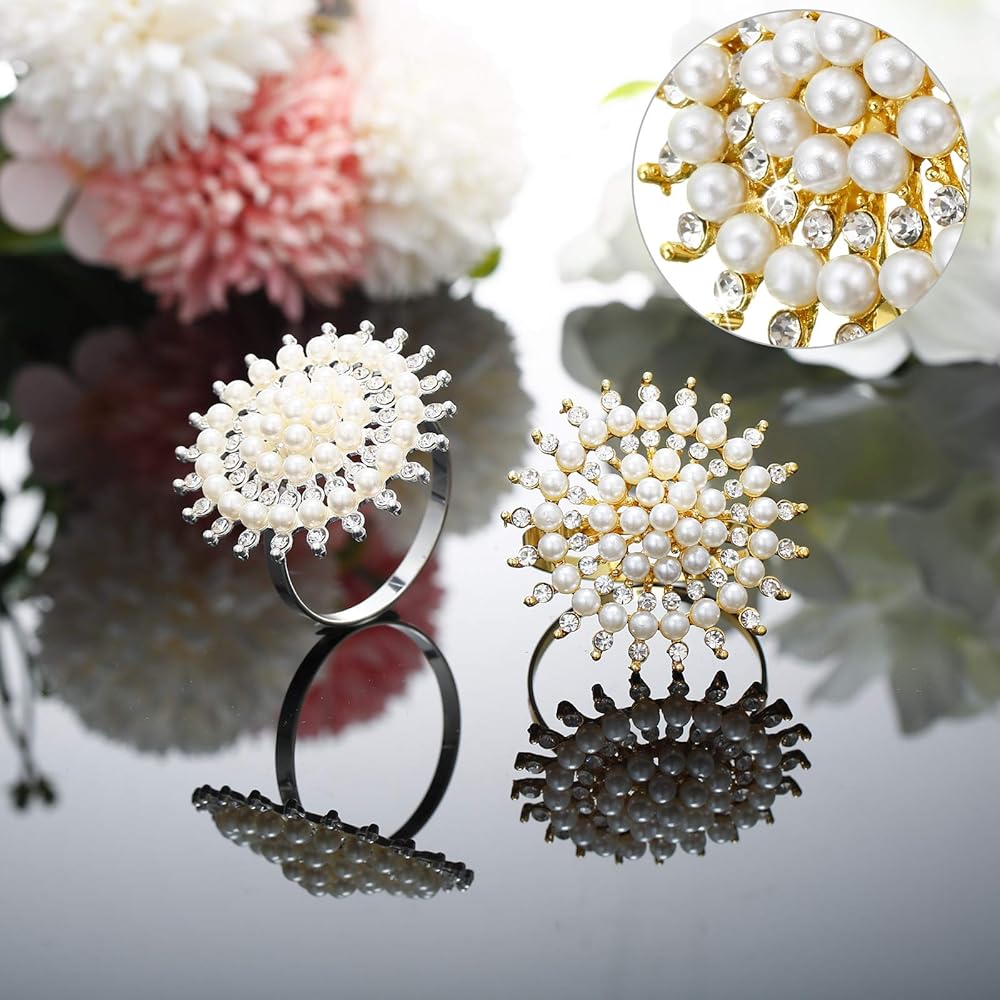 Flower napkin ring is not just a simple snowflake shape, and it is embellished with rhinestones and faux pearl to make it more shiny and delicate. Such a distinctive design will make it the highlight of your dining table.