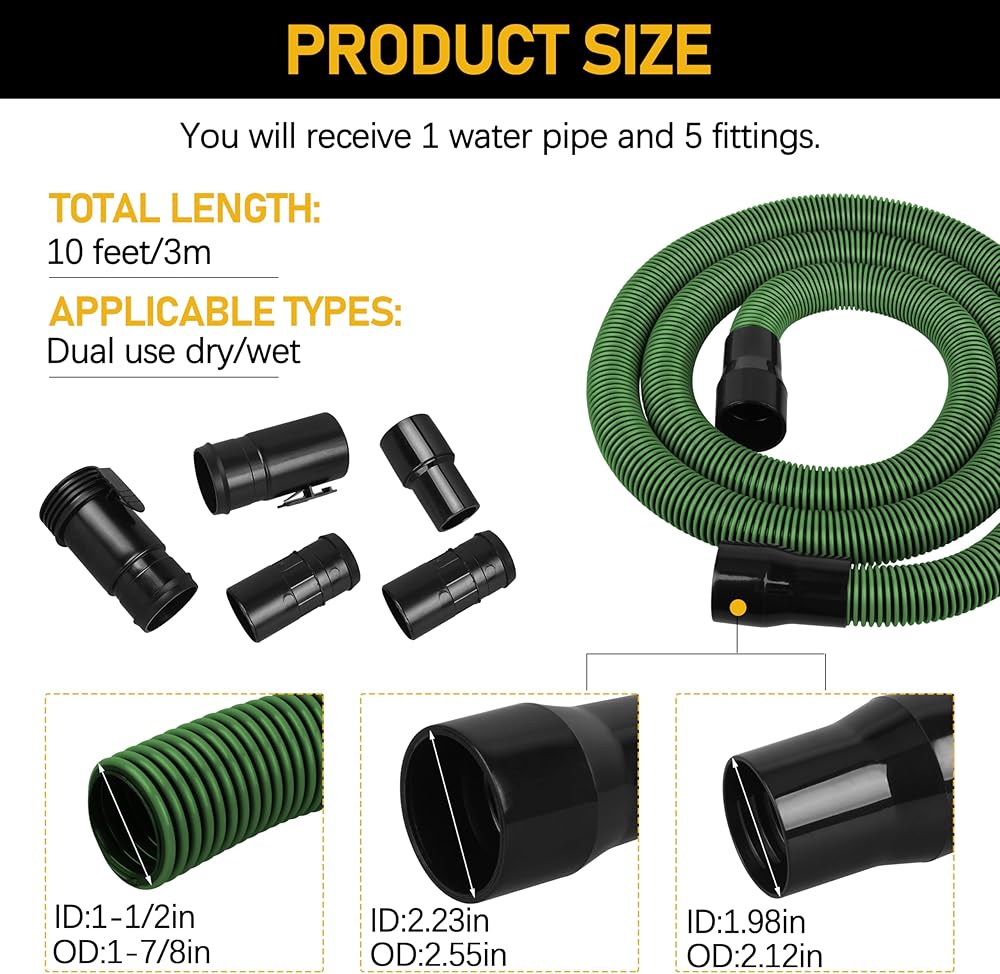 Widely Compatible:1-7/8-inch Shop Vacuum Hose for Ridgid、DEWALT Wet/dry Vac Also Compatible with 1-7/8-inch and 2-1/2-inch Wet/dry Vacuum Cleaner Accessories and Attachments