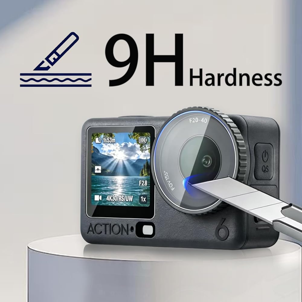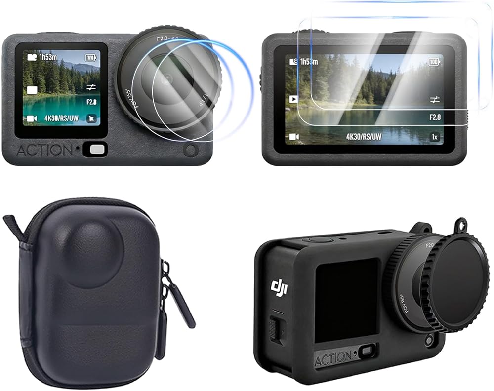 7-in-1 Accessories Kit for DJI Osmo Action 6, Included 2 Pack 9H Hardness Tempered Glass, Carrying Portable Storage Case with Carabiner Clip, Black Silicone Case