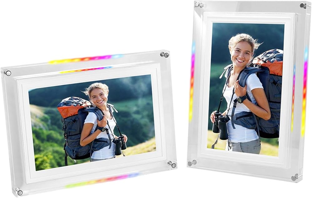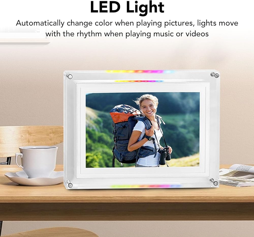 HD 10.1 INCH TOUCHSCREEN: Digital photo frame features a vibrant 1280×800 resolution display with responsive touch controls for smooth zooming, rotating, and slideshow playback, delivering stunning visual clarity.