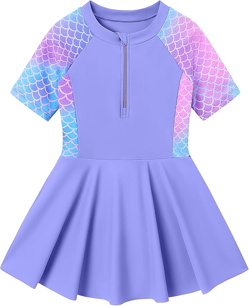 Easy Care & Long-Lasting: Our girls swimsuit one piece is machine washable, staying vibrant and new-looking through many seasons of play. This girls rash guard swimsuit offers lasting comfort and value for your child.We hope this girls short sleeve swimsuit will let your child enjoy summer to the fullest.