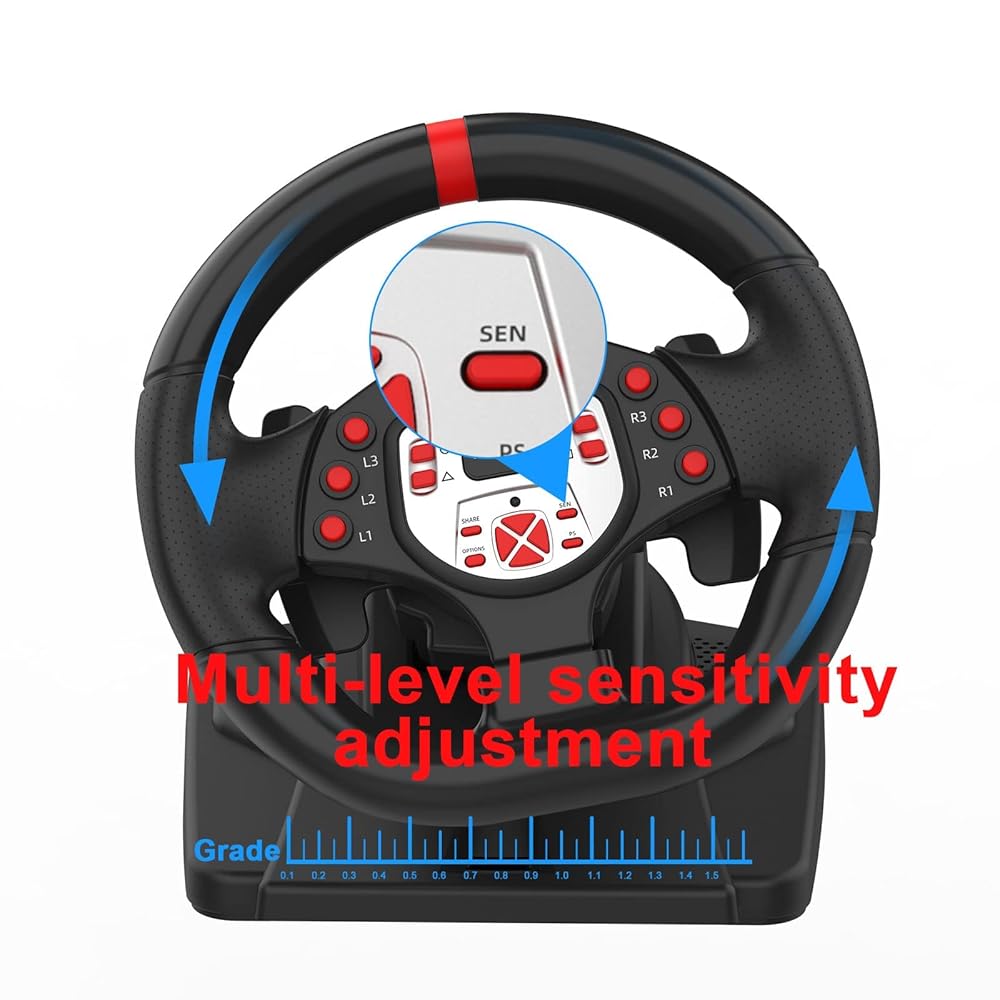Double Motor & 180°Rotation: The racing game steering wheel comes with a built-in dual-motor drive and 180-degree swivel design, sensitivity adjustment, and button programming, freely adjustable to meet the need of the racing game and experience the real racing pleasure