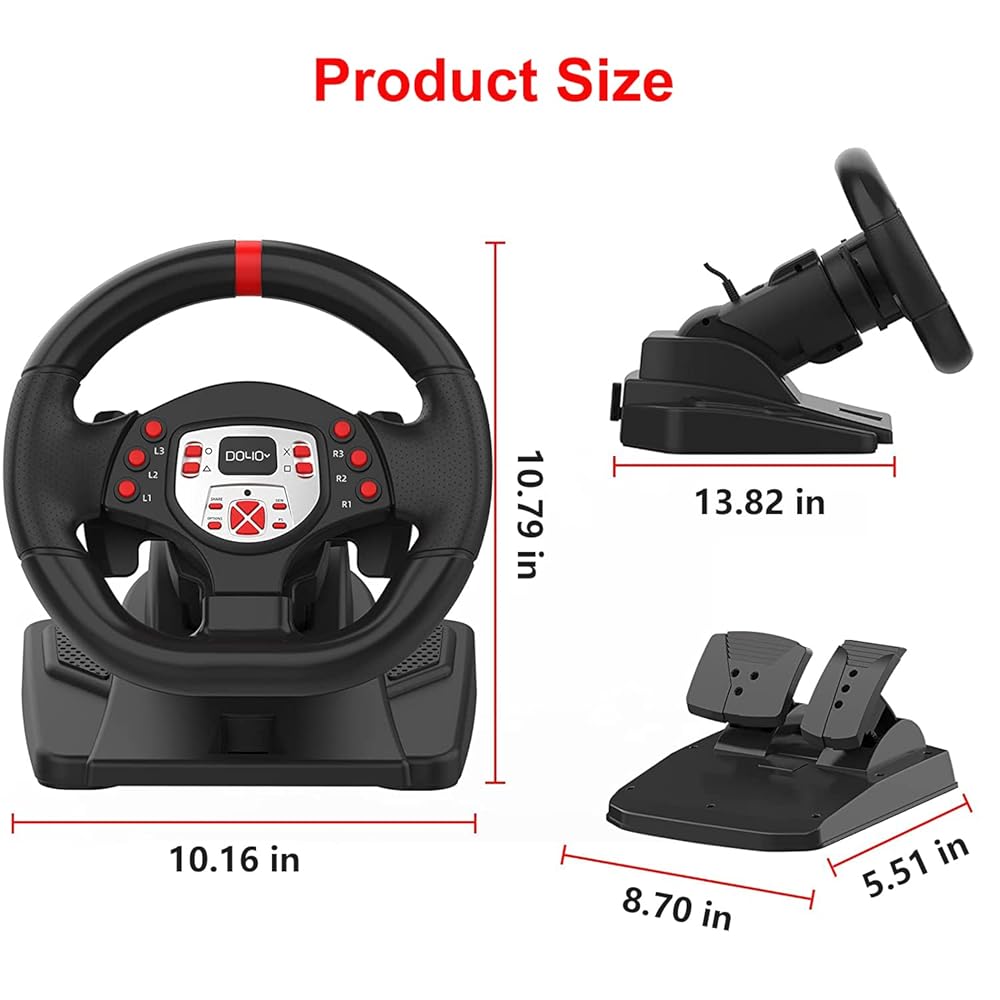 DOYO PS4 Steering Wheel and pedals and shifter, volante para PC, 180°gaming racing wheels Dual-Motor Feedback Driving Force for PS3/PS4/PC/Nintendo Switch/Android