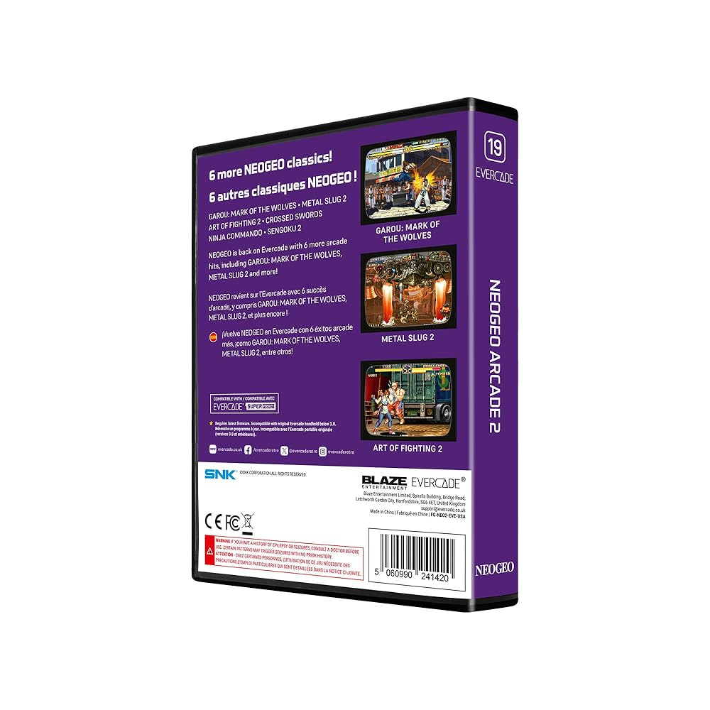 NEOGEO Arcade 2 presents six more NEOGEO classics for Evercade! Battle for glory in GAROU: MARK OF THE WOLVES, blast into action with METAL SLUG 2 and more!