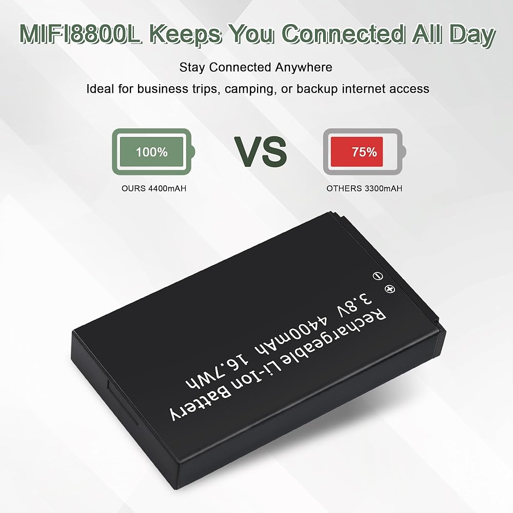 MiFi 8800L battery replacement: compatible for Verizon wireless Novatel Jetpack MiFi 8800L, 7730L. Please check if this battery model is suitable for your device before purchasing