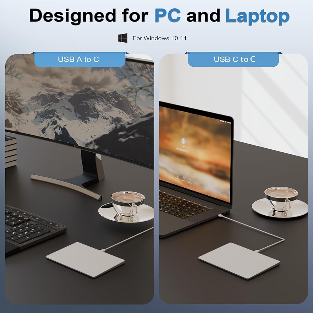 Wired USB-C Connection with Dual Cables - Forget charging and connectivity issues—this touchpad provides a stable, lag-free wired experience via USB-C. Enjoy plug-and-play convenience with two included cables: one USB-A to USB-C and one USB-C to USB-C, ensuring compatibility with both traditional and modern devices.