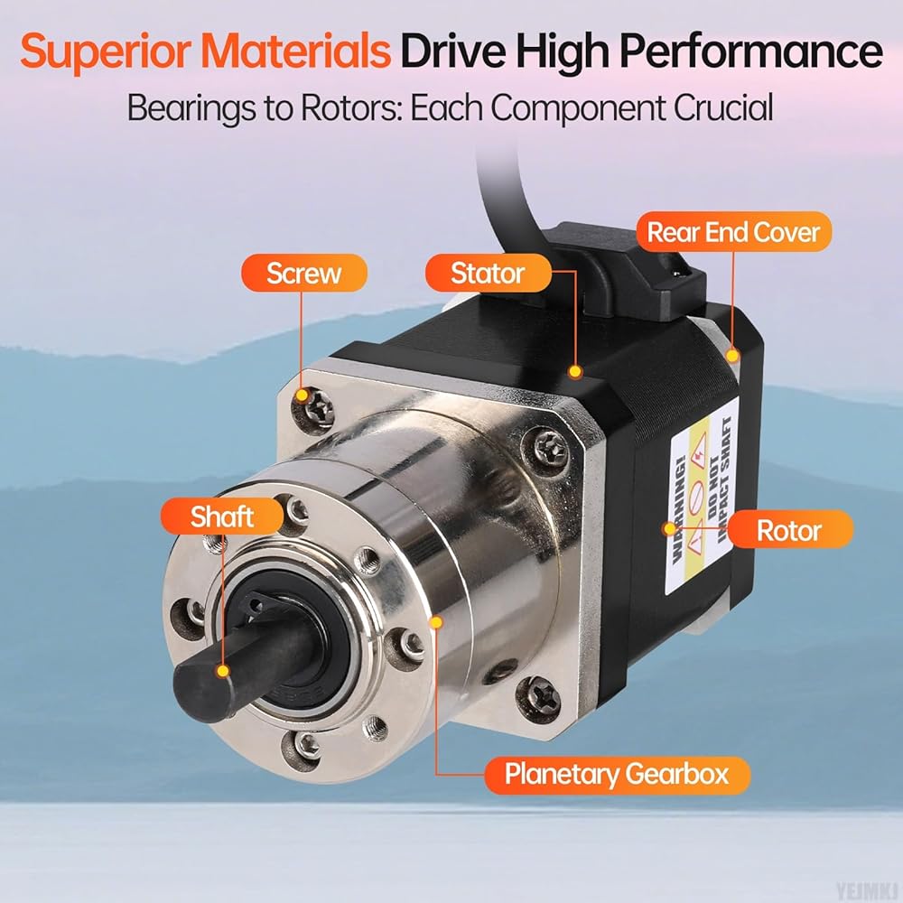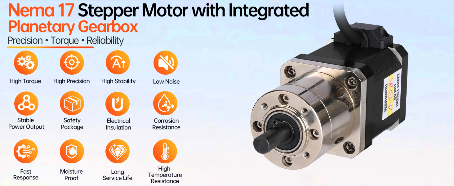 More Power, Less Noise: Leveraging reinforced steel cores and meticulously wound coils, this nema 17 planetary reducer stepper motor offers up to 20% increased holding torque versus standard units. Benefit from a quieter operational profile and minimal environmental disturbance.