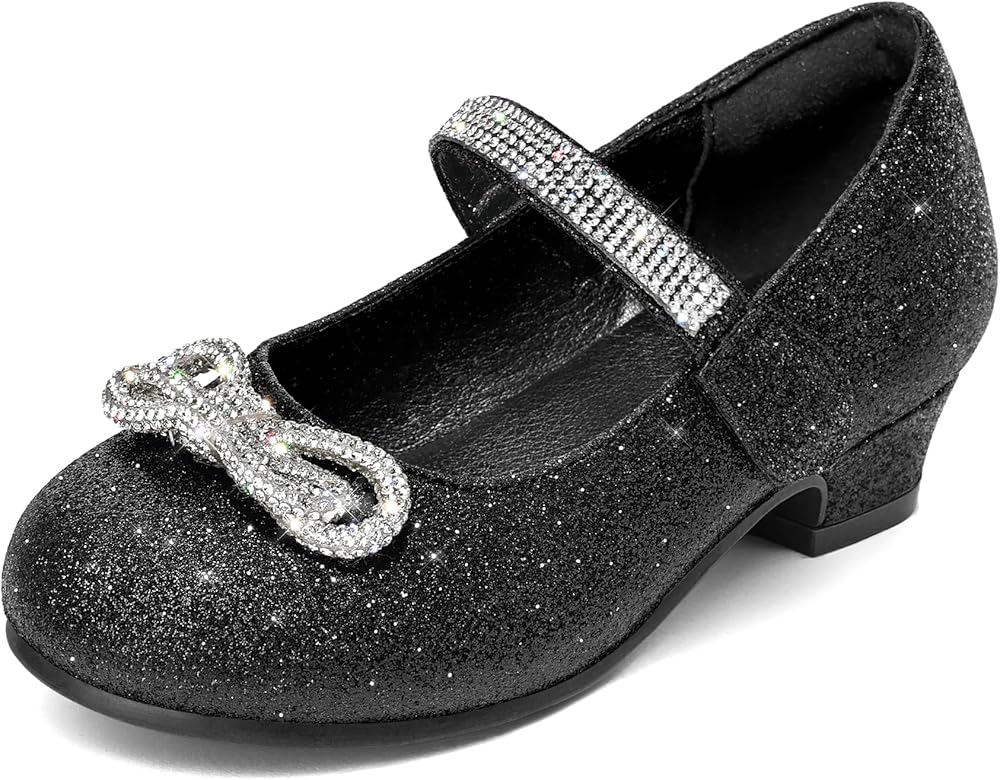 K KomForme mary jane dress shoes combine fancy ballet look with comfortable wear, making them perfect for toddler girls at special occasions or daily life. Embellished with a sparkling rhinestone strap, it effortlessly adapts to any look -- whether for school, weddings,dancing or parties. Featuring a convenient hook-and-loop shining closure, these Cinderella crystal and glittering flats is quick to take on and put off while providing a secure fit to prevent slipping. Inside, the soft lining and breathable insole keep little kids' feet dry and cozy all day long, letting toddler children run and play freely. The pumps' round toe and 1IN low heel provide the proper height to protect toe development while creating a sweet, princess style. The outsole utilizes anti-slip TPR rubber for enhanced traction, ensuring safe and stable movement during running and jumping. From casual wear to formal occasions like church, birthday party and pageant, these shiny sandals are your ideal choice—empowering every little kid to confidently sparkle in comfort and safety.