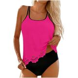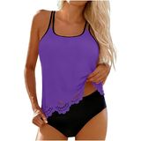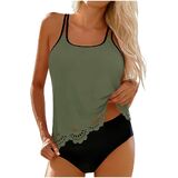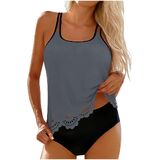 Design: Conservative two-piece Tankini swimsuit with built-in chest pads and cinched shorts. It adopts a strappy design and incorporates elements of Lace, making it cool and sexy. Suitable for beach vacations and swimming.