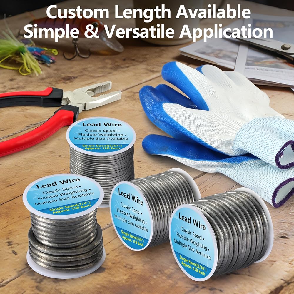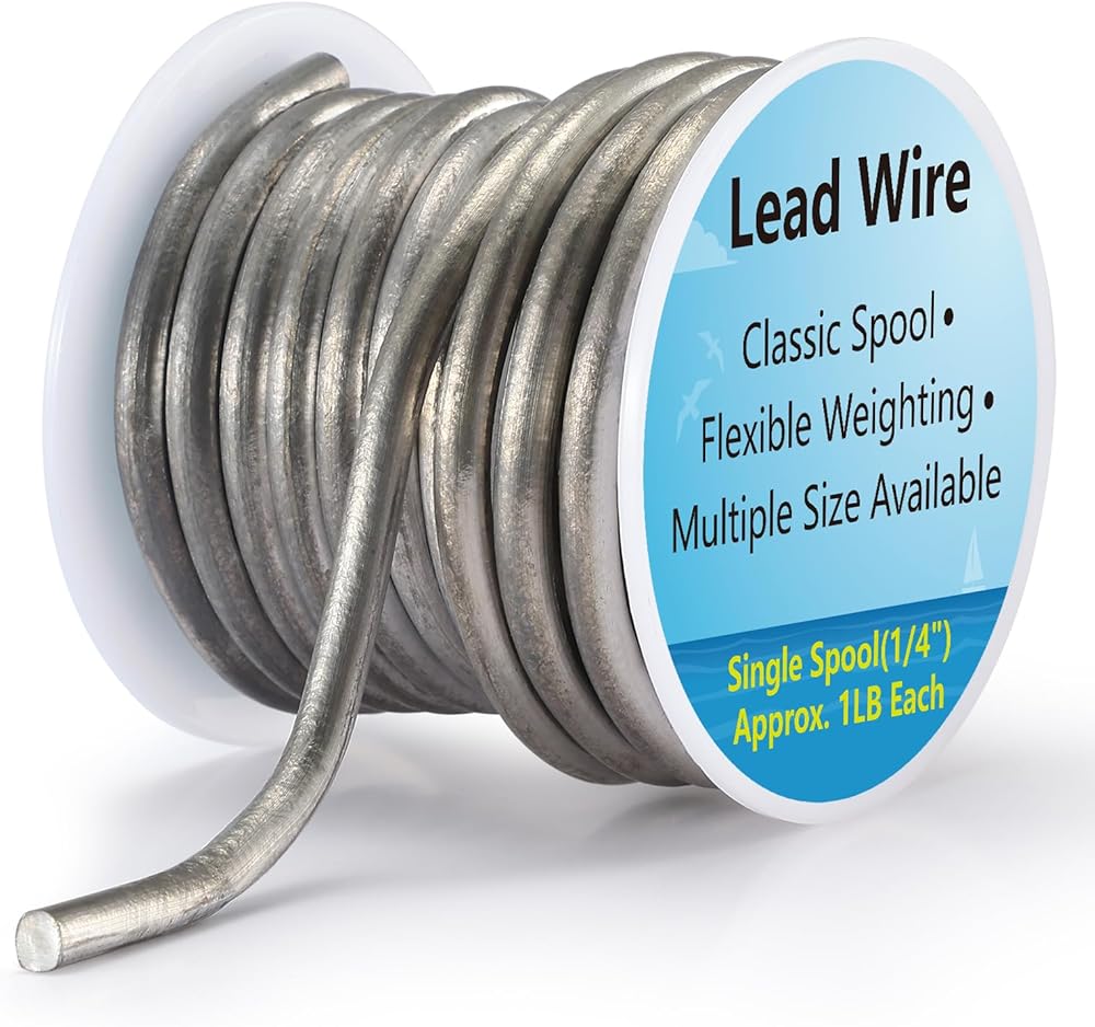 Lead Wire Solid Core Roll 1 Lb Spool — Soft High Density Lead Line for Fishing Sinkers, Drift & Dragging Weights, Fly Tying Crafting Material with 5/64", 1/8", 3/16", 1/4" Gauge Available