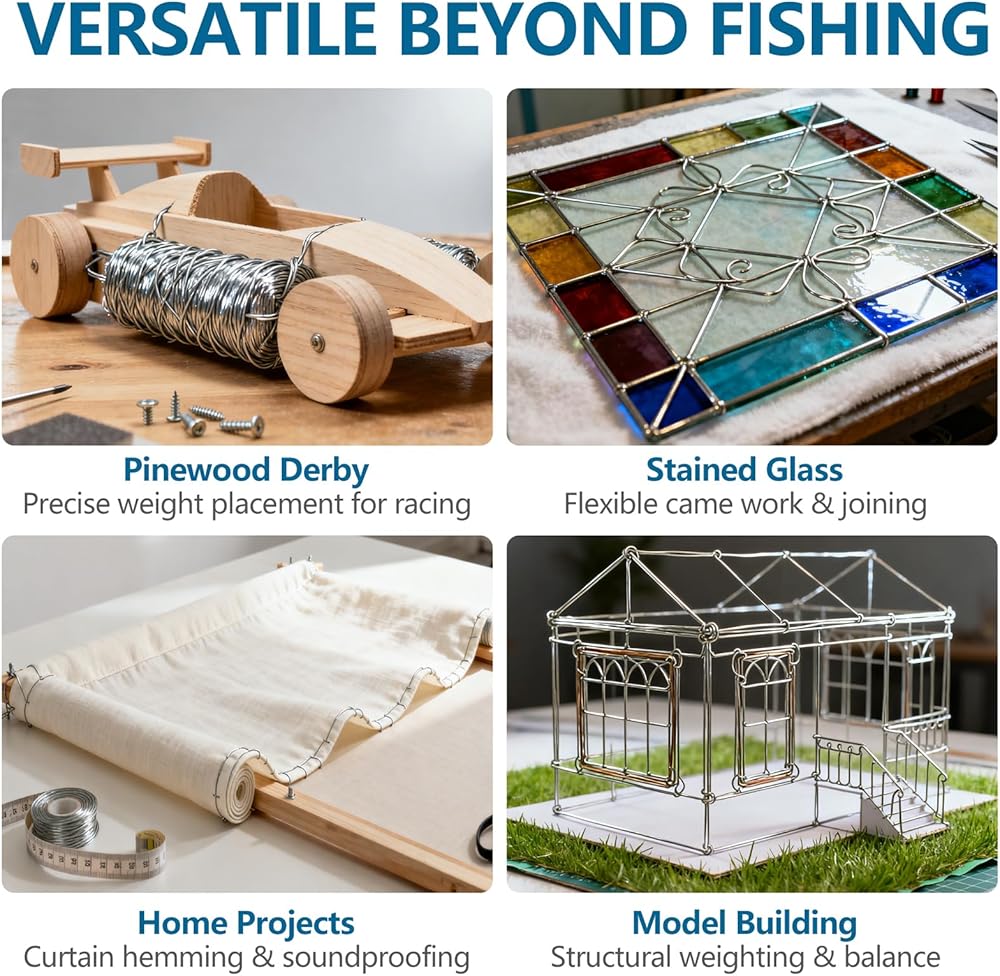 VERSATILE BEYOND FISHING — Ideal for pinewood derby car weighting, model building, stained glass came work, vibration dampening or hobby applications, curtain hemming, and general crafting. Easily moldable for unlimited DIY projects