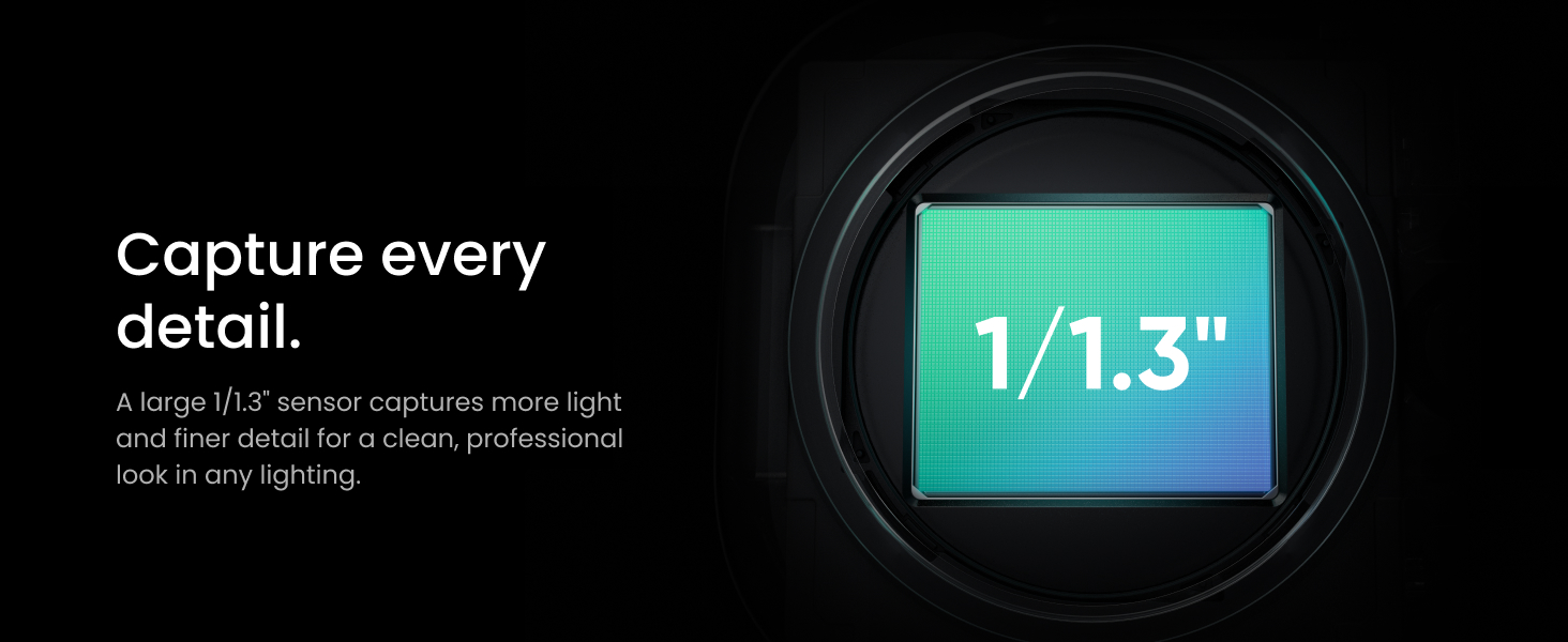 Flagship Image Quality: Capture sharp, detailed 4K with a large 1/1.3” sensor that delivers cleaner video and excellent low-light performance. Great for streamers, meetings, and beyond.