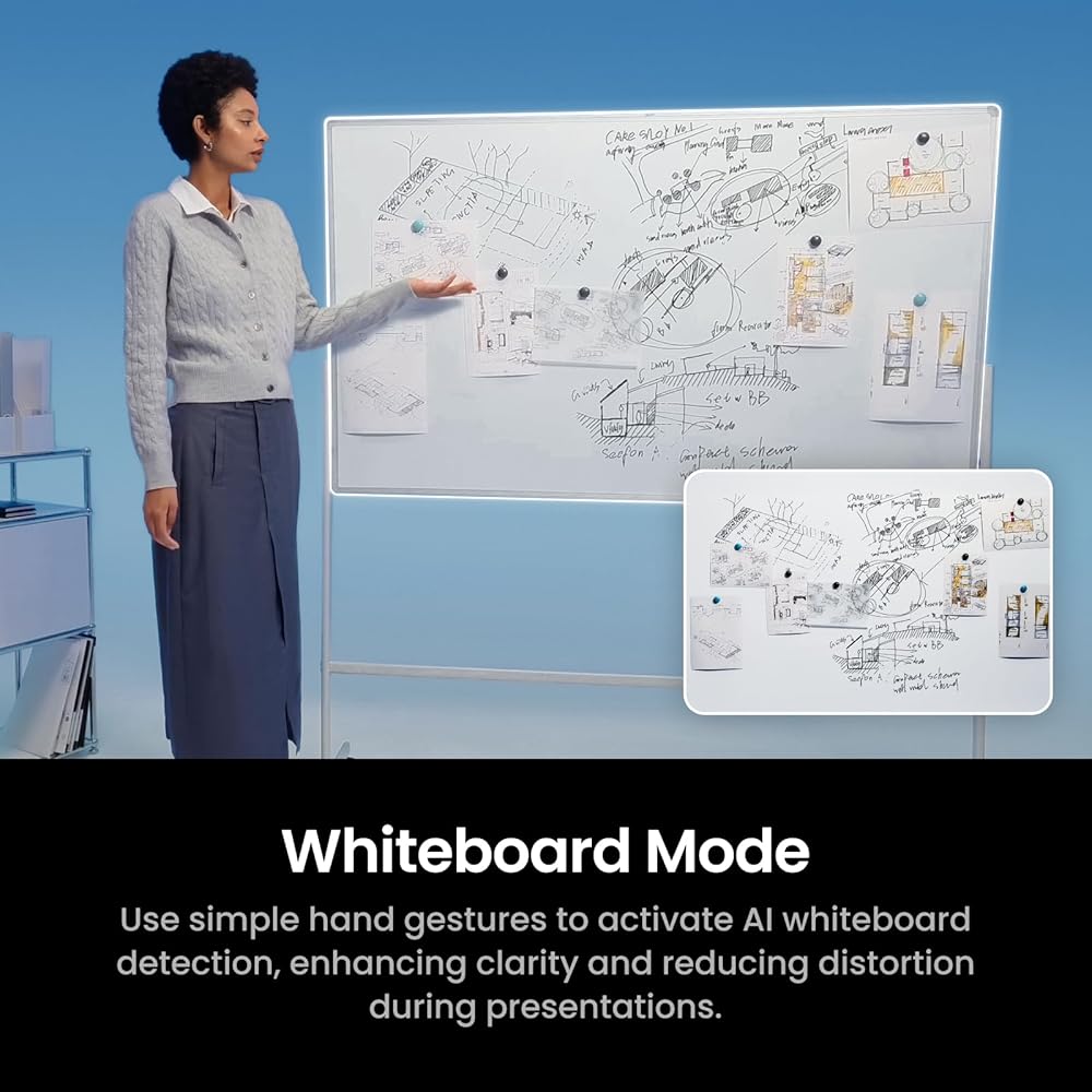 Smart Gesture & Mobile Control: Start tracking, zoom, switch modes, or enable Whiteboard Mode using simple hand gestures (or your smartphone).