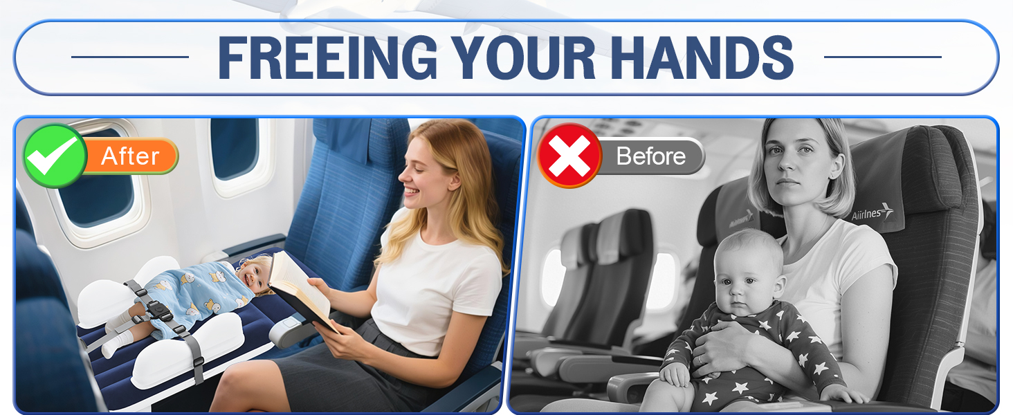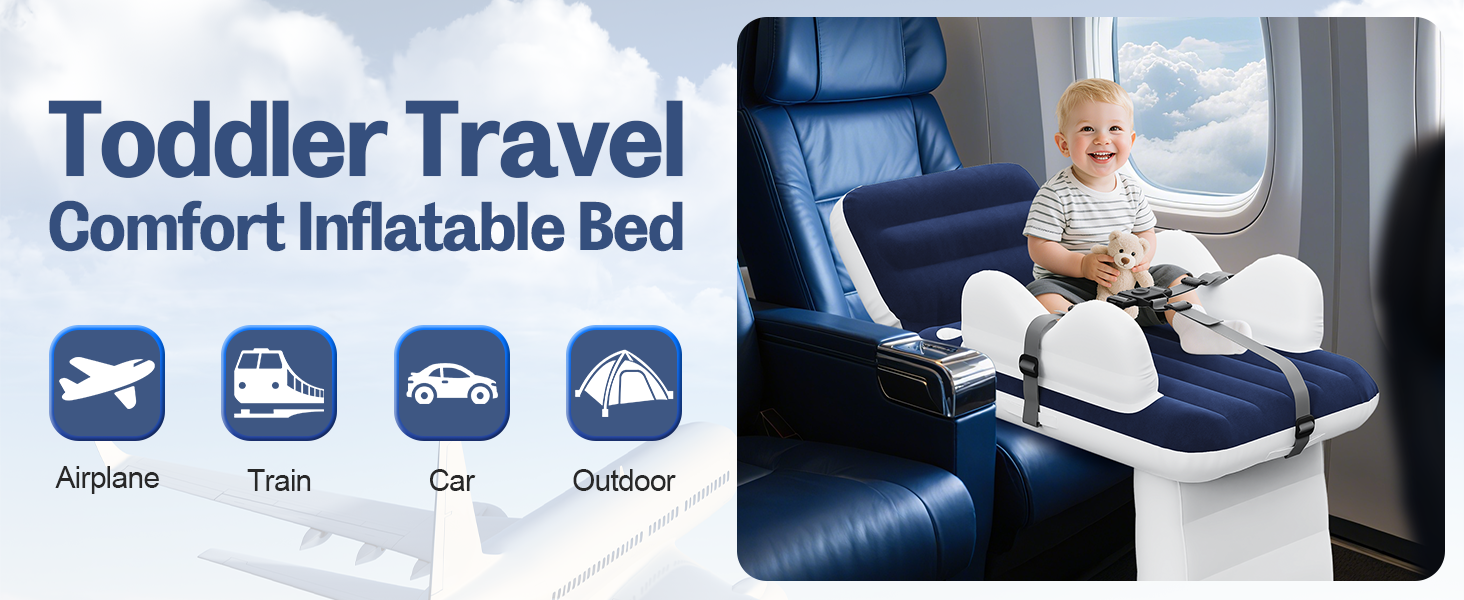 【 Travel-Friendly Design & Versatility】This inflatable airplane bed comes with independently adjustable pillow and footrest sections, airplane bed for toddler can be customized to fit any seat by adjusting the inflatable valves on the pillow and footrest sections,Easily tailor the fit to any seat or convert it into a flat travel bed. Perfect for parents traveling with children on planes, cars, trains, or outdoor.