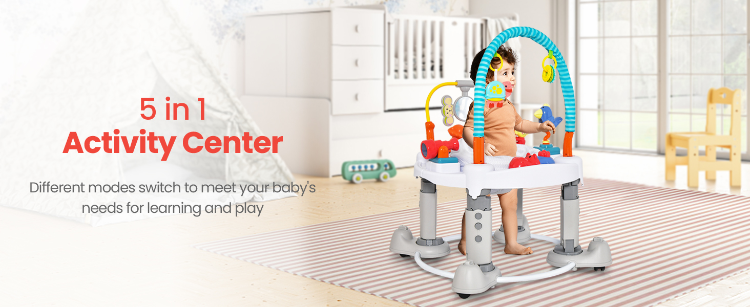 5 in 1 Baby Play Center: The INFANS baby activity center can be transformed into a bouncer, baby walker, play mat, push car and activity table to provide endless fun for your baby from 0 to 24 months. Crawling mat is suitable for babies aged 0-6 months, bouncer chair is suitable for babies aged 6-12 months, and activity table is suitable for babies over one year old.