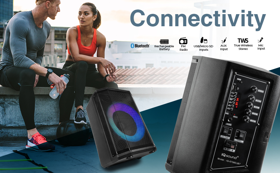 Supersonic IQ Sound IQ-6708DJBT Portable Bluetooth Speaker- Unleash Powerful Sound, Dazzling Light Show, Tiltable Audio Enhancement, USB/SD/AUX Input, TWS, and FM Radio (8 inch)