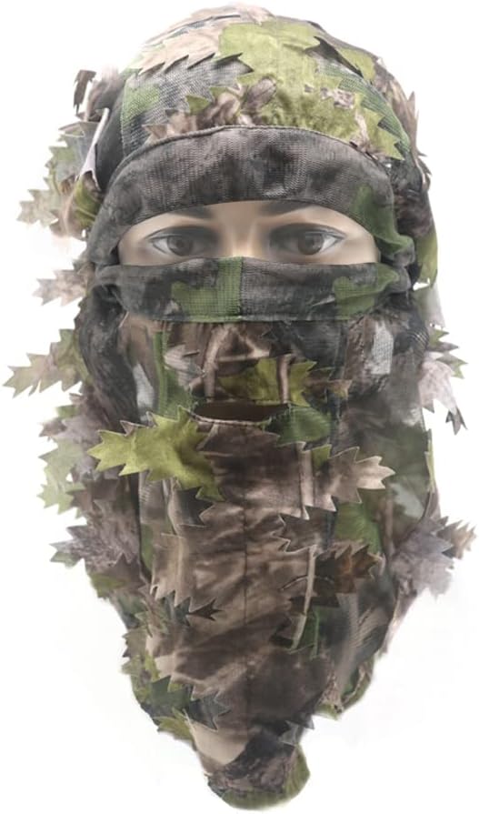 【Camo Outdoor Concealment】 - It gives you camo in the tree,with very small amount of your face exposed. You can also put down the curtain on the forehead to cover the eyes area, and completely hide your head.