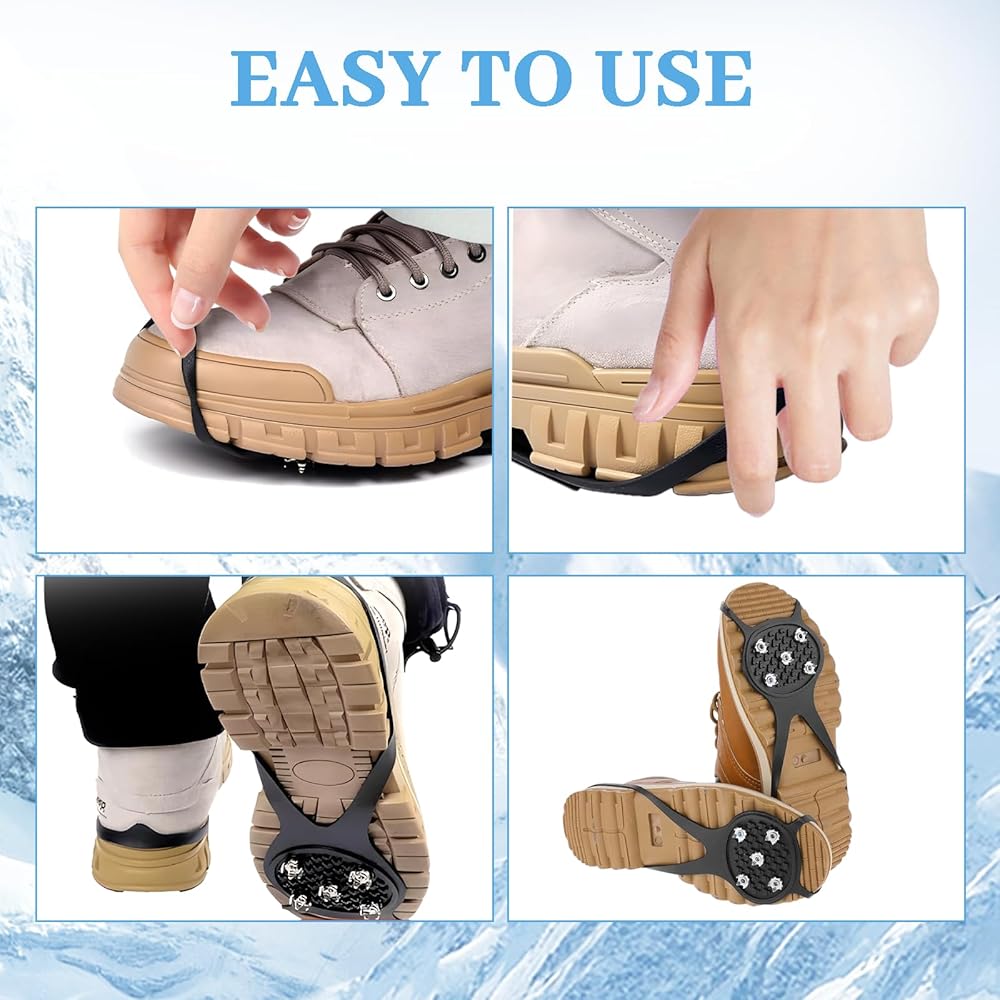 Secure Traction:Upgrade footwear with spike shoes technology for icy paths. These ice cleats feature hiking spikes grips that prevent slips on packed snow. Ideal for daily commutes or trail adventures