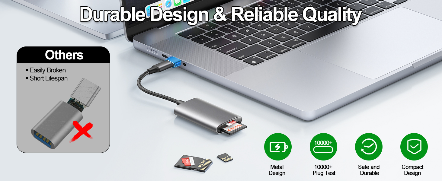 γReliable QualityγEngineered for enhanced durability, durable aluminum alloy shell material,get excellent wear resistance and heat dissipation,the male USB C and female USB connectors & the male USB and female USB C connectors are designed to be plugged and unplugged up to 20000 times. Provides data transfer, device charging, memory space expansion, and additional computer peripherals.