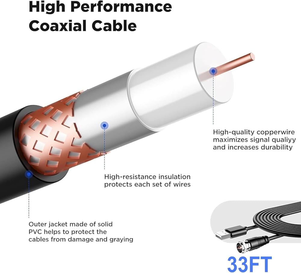 2025 TV Antenna, 999+ Mile Long Range TV Antenna for Smart TVs and All Older TVs, Indoor Outdoor Clear Digital Antenna with 4K 1080p Support - Coaxial 33FT Cable and Amplifier