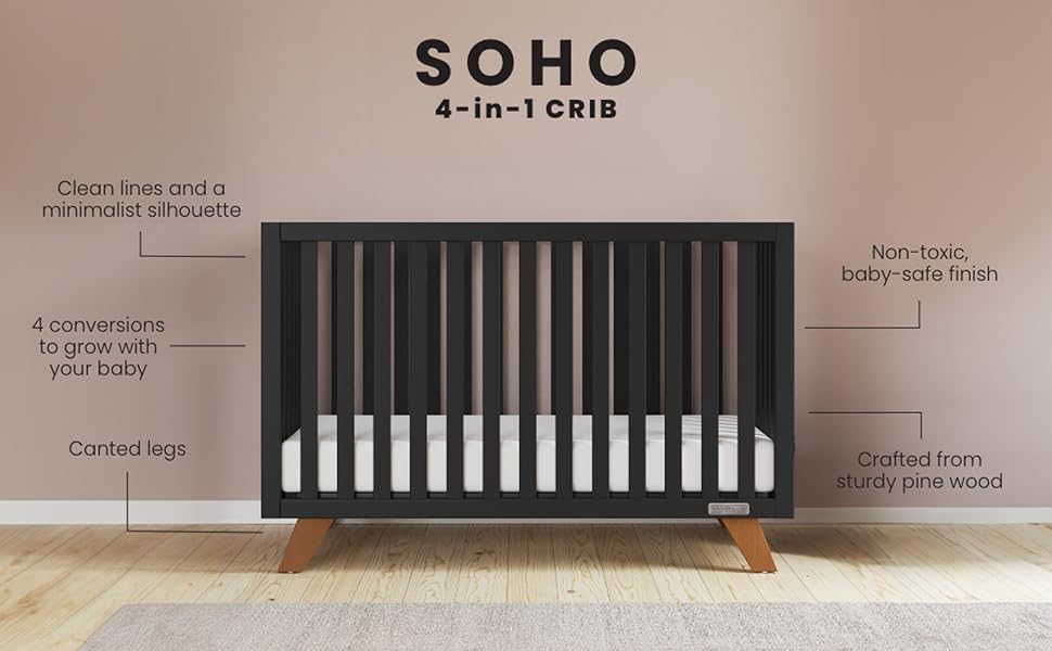Chic Modern 4 Piece Nursery Crib: Beautifully designed mid-century modern styling boasts clean lines and canted. Nursery set features 4-in-1 convertible crib, a 4 drawer chest, a 3 drawer dresser, and a nightstand