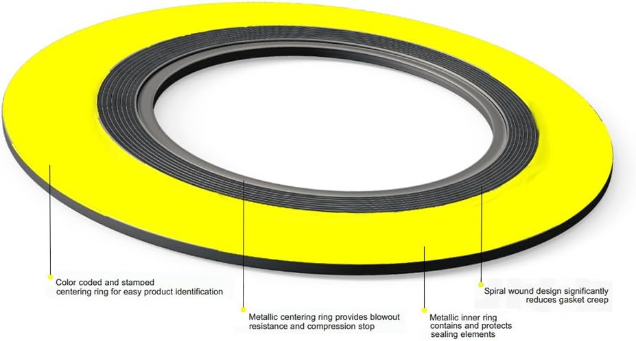 Gasket identification markings required by ASME B16.20 clearly etched in all gaskets. These gaskets Excel in the prevention of flange erosion, inward buckling and reduction of turbulent flow