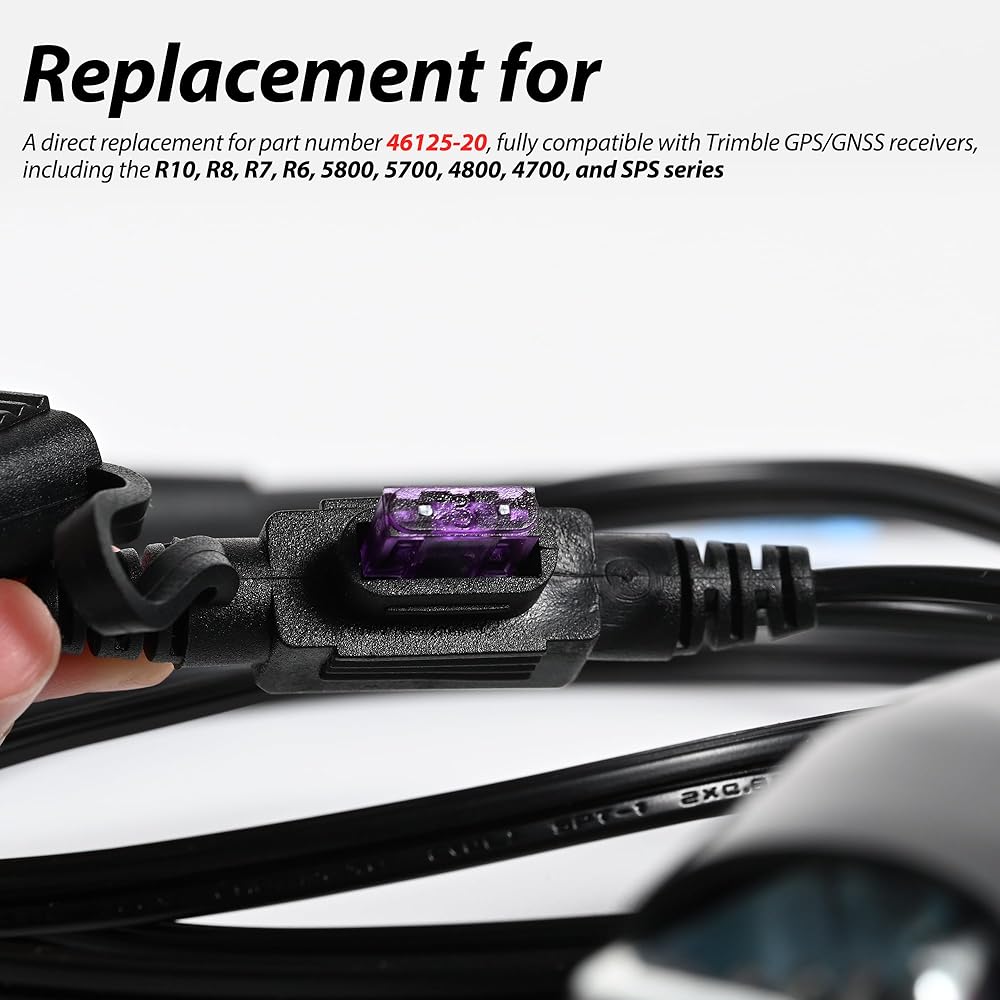 • A direct replacement for part number 46125-20, fully compatible with Trimble GPS/GNSS receivers, including the R10, R8, R7, R6, 5800, 5700, 4800, 4700, and SPS series