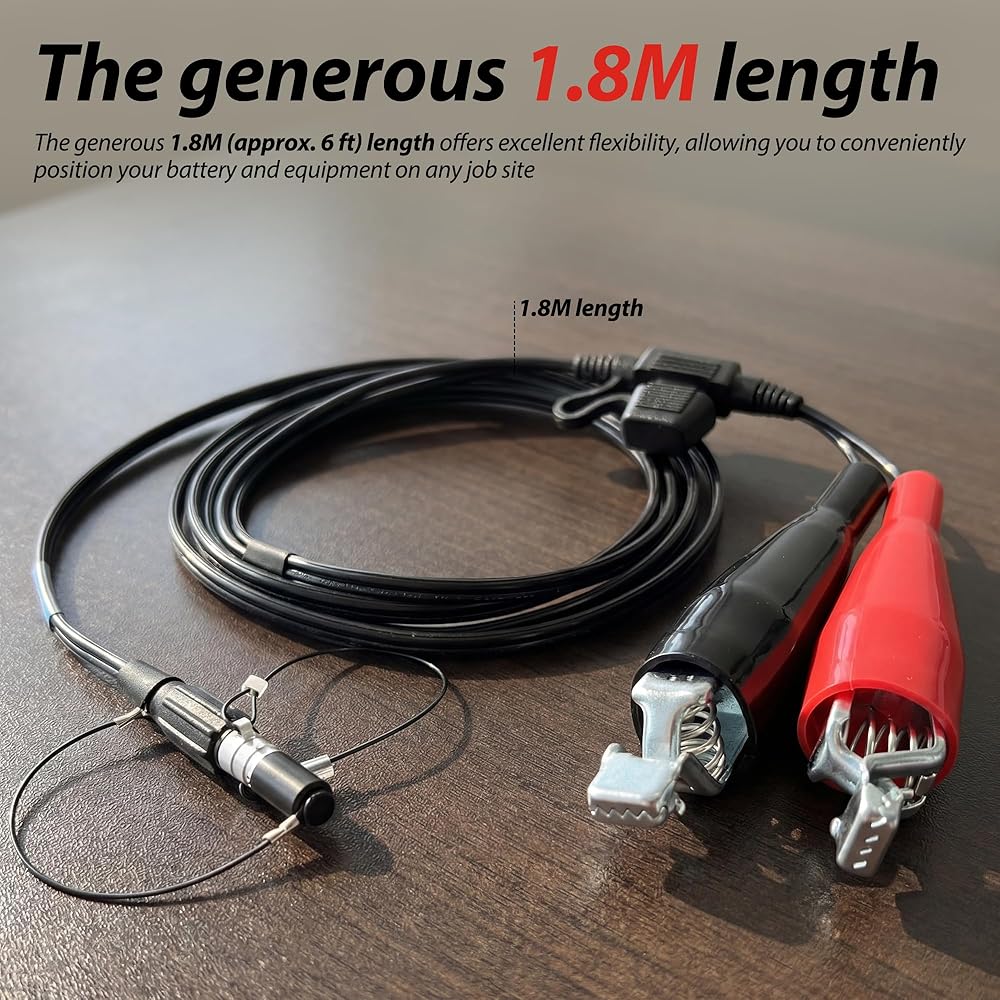 • The generous 1.8M (approx. 6 ft) length offers excellent flexibility, allowing you to conveniently position your battery and equipment on any job site