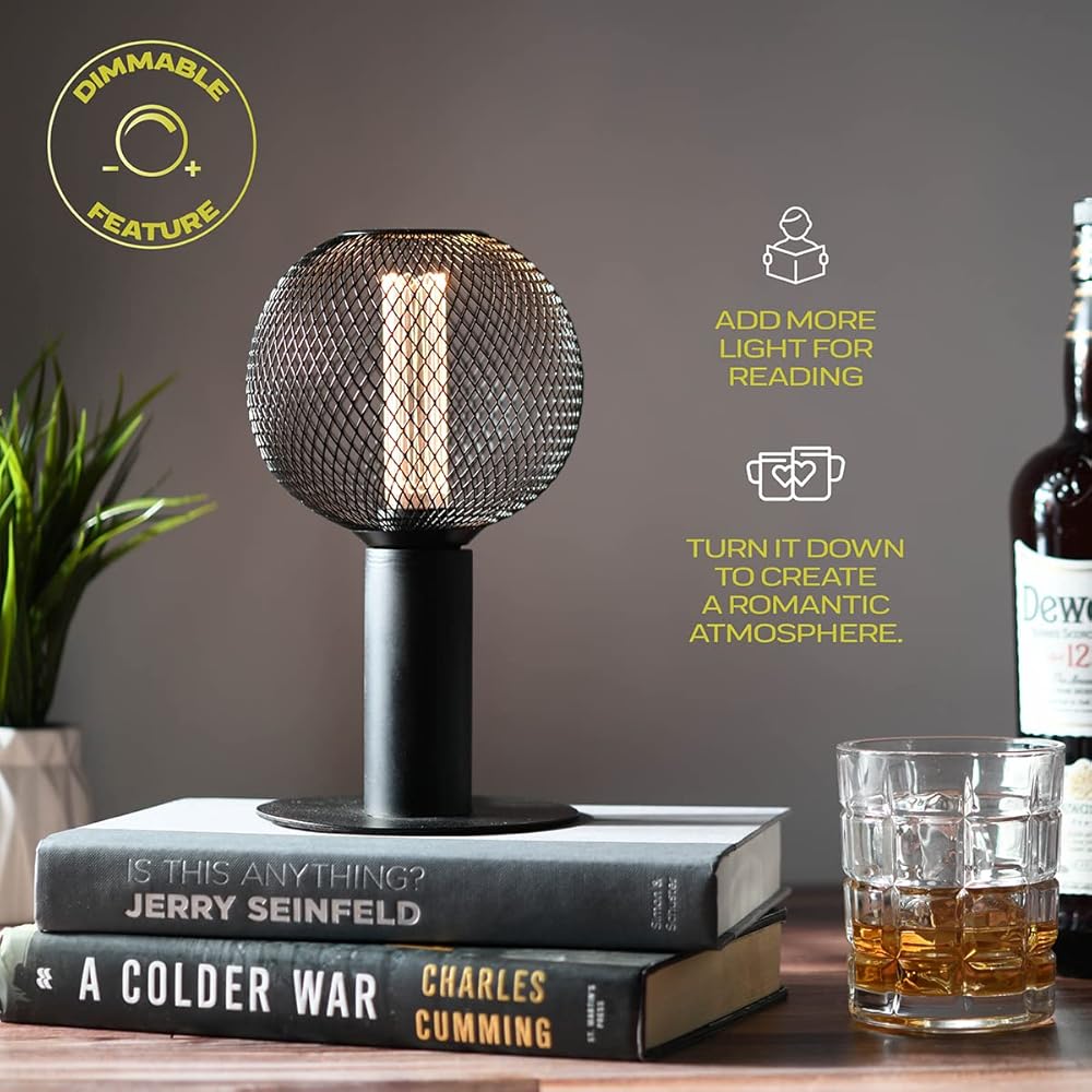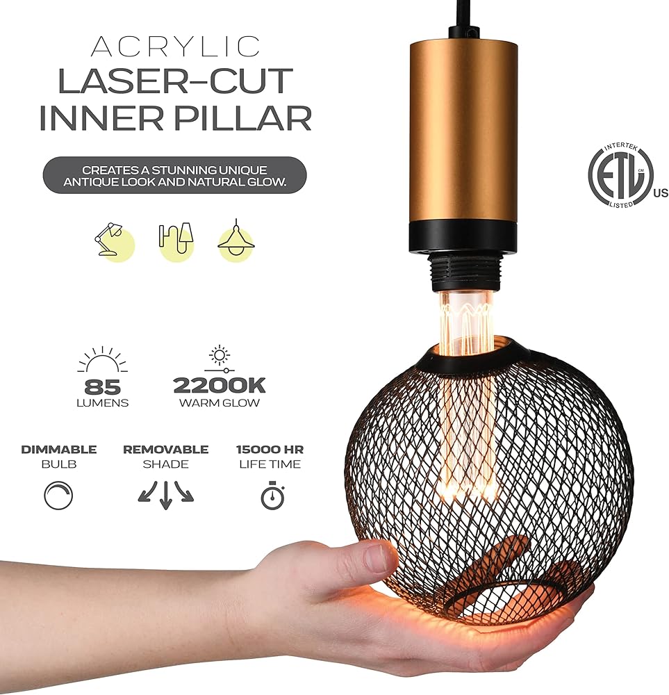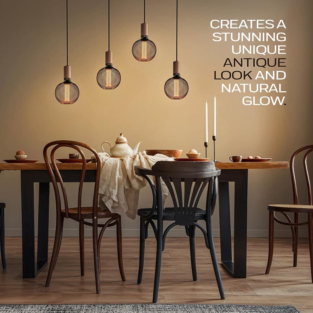 BLACK METAL CAGE - Next Glow Ember Collection unique led round globe light bulbs with its Black Metal Cage finish, 2000K warm light color helps creating a more distinct look in your living room, bedroom, dining room, restaurant, or den great for open socket fixtures.
