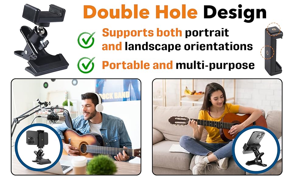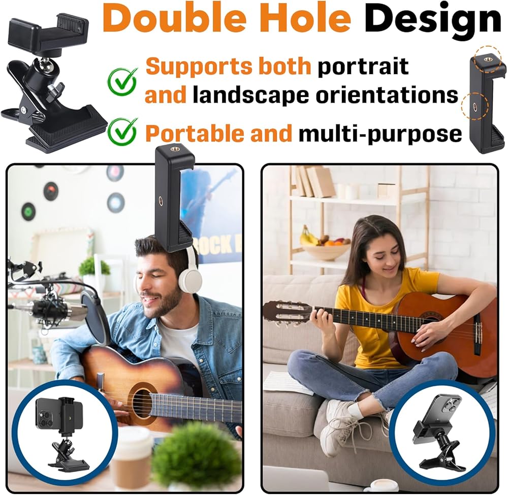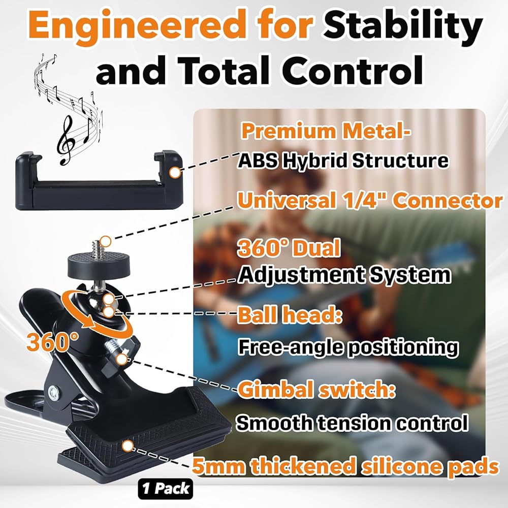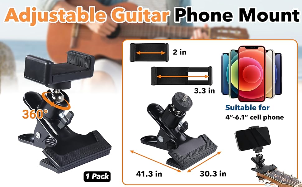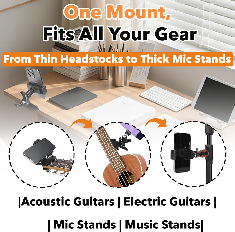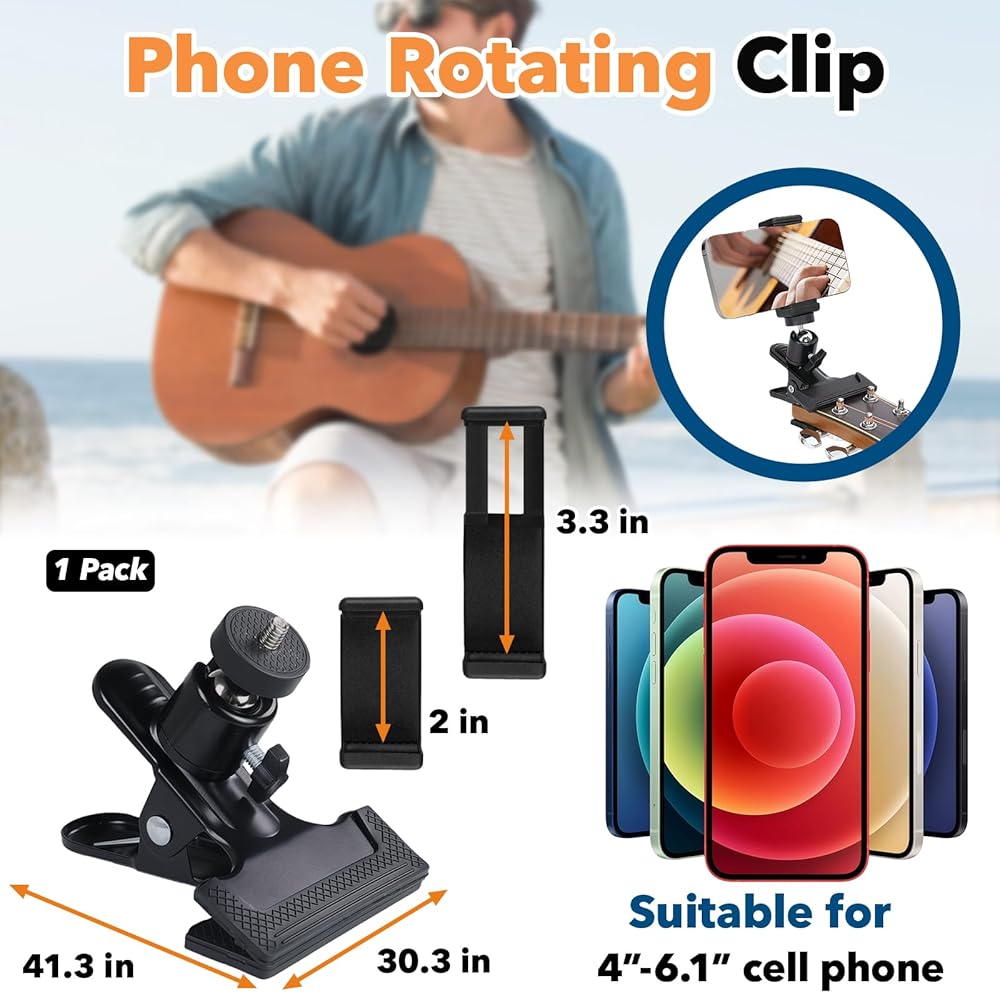 Multiple 360° Adjustable Guitar Phone Mount Holders - Universal Fit Compatible with Acoustic/Electric Guitar, Bass & Ukulele, Perfect for Live Broadcast, Teaching & Video Recording