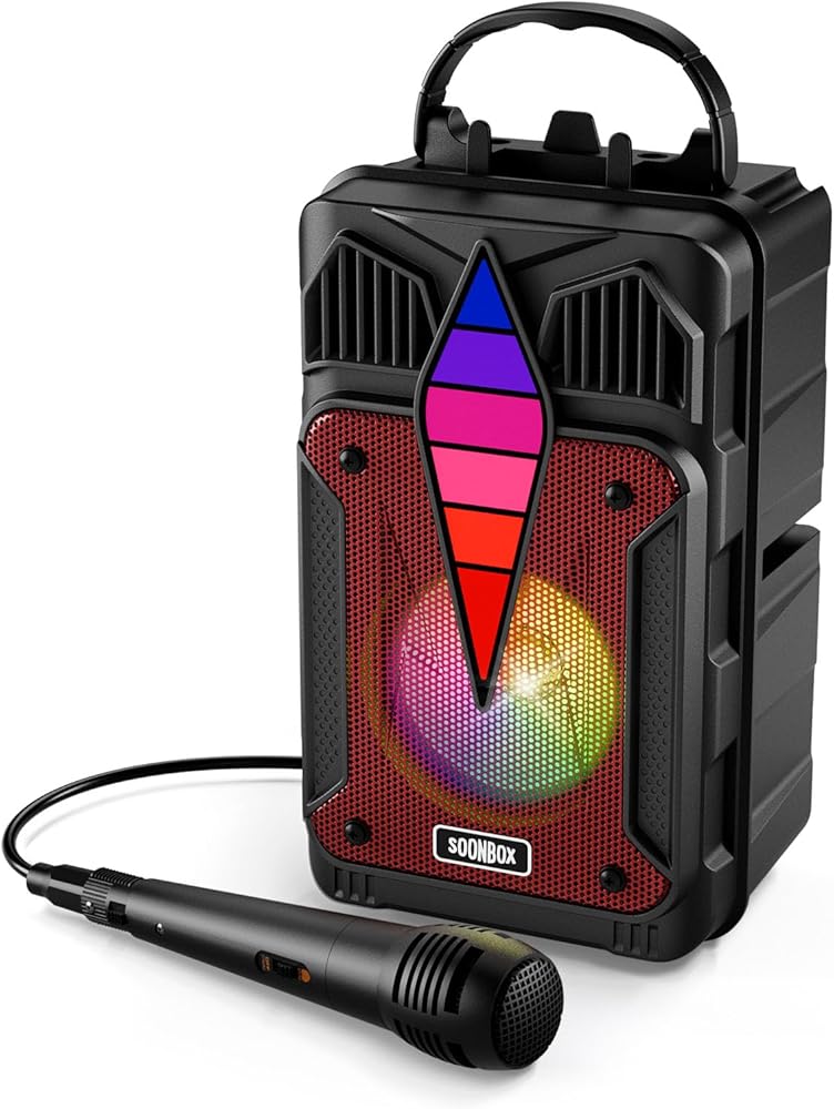 【Colorful Light Mode】This speaker comes with voice-activated RGB multi-color rhythm light, allowing you to switch between different coloured lights at will. Enjoy the joy of the party with colorful lighting and wonderful music, moving with the beat of the song, charming and romantic, allowing you to immerse yourself in the colorful music light show, perfect for family gatherings, Christmas performances, and various outdoor or indoor party activities.