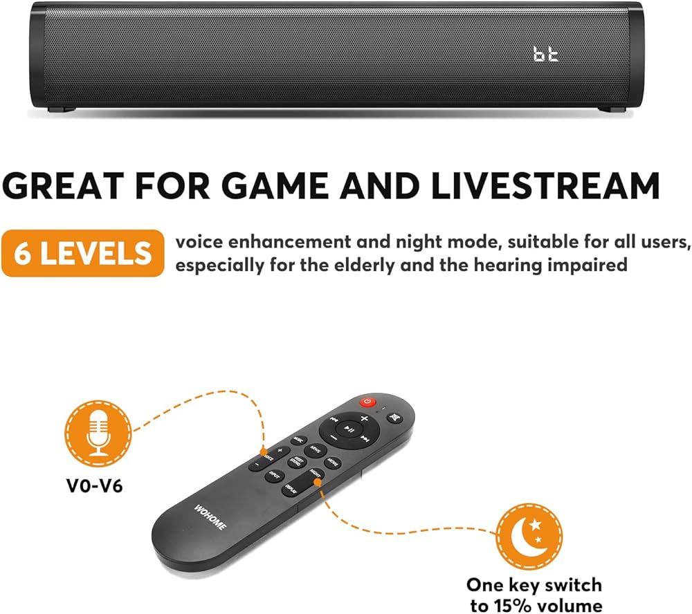 16-inch Ultra Slim Soundbar: This sound bar is compact, just over 2" tall for easy placement in front of your TV or mounted to a wall, matches any room and perfect for small spaces.