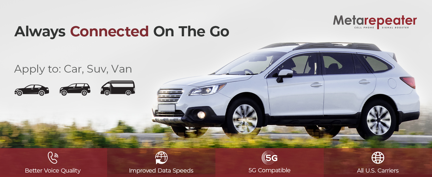 【Work for All Carriers】 Cell phone signal booster for car compatible with all U.S. carriers, including Verizon, AT&T, T-Mobile, Sprint, Straight Talk& More