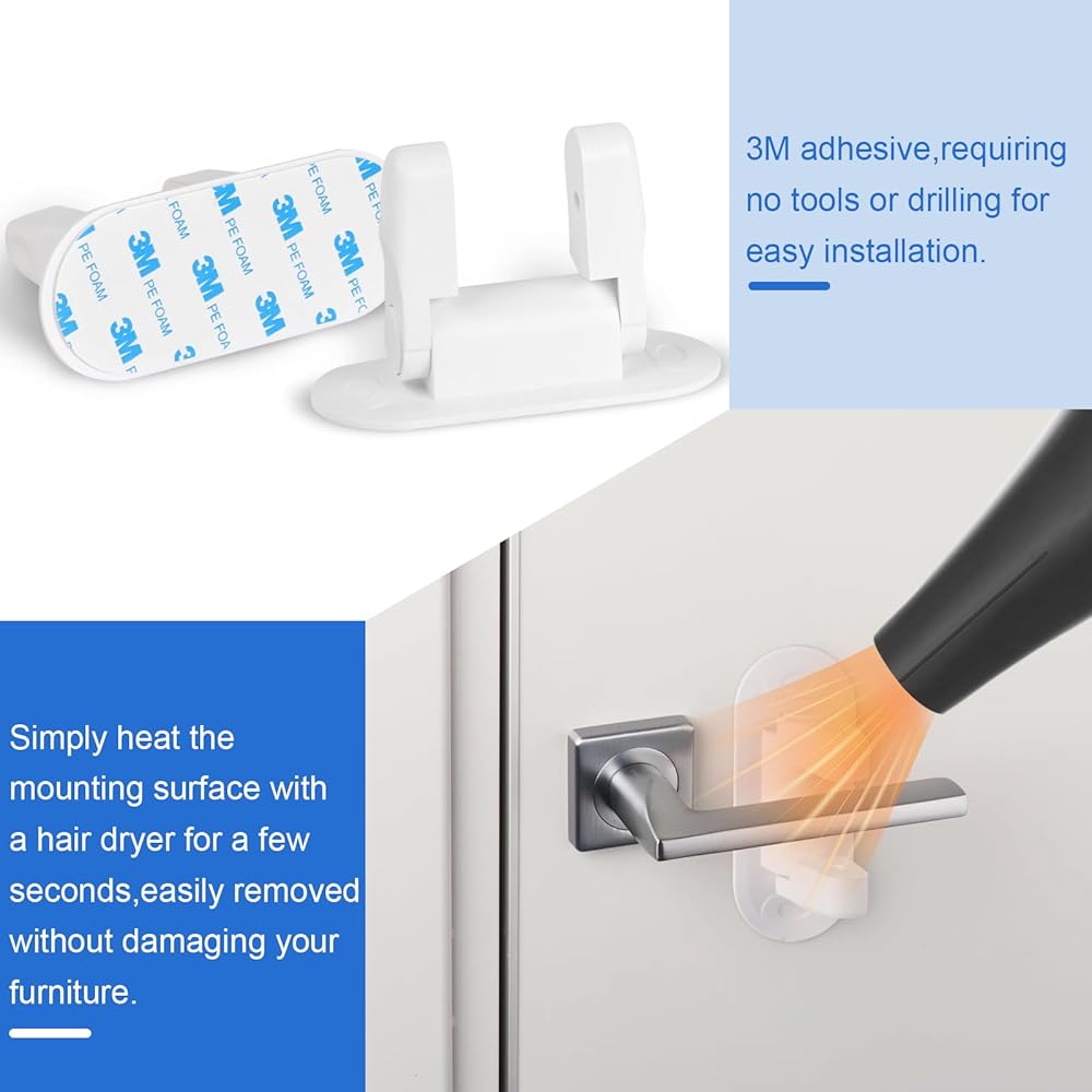 Tool Free Installation: Stick to flat doors with included 3M adhesive; removes cleanly without residue. Covers 4.72”H x 1.97”W surface area.