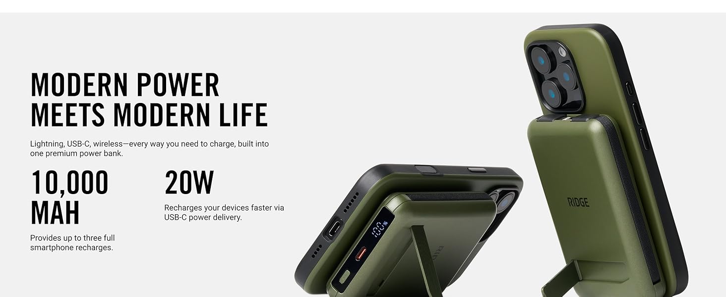 𝐌𝐎𝐃𝐄𝐑𝐍 𝐏𝐎𝐖𝐄𝐑 𝐌𝐄𝐄𝐓𝐒 𝐌𝐎𝐃𝐄𝐑𝐍 𝐋𝐈𝐅𝐄: Lightning, USB-C, wireless—every way you need to charge, built into one premium power bank. Just 10,000mAh of intelligent power to travel light and stay powered.
