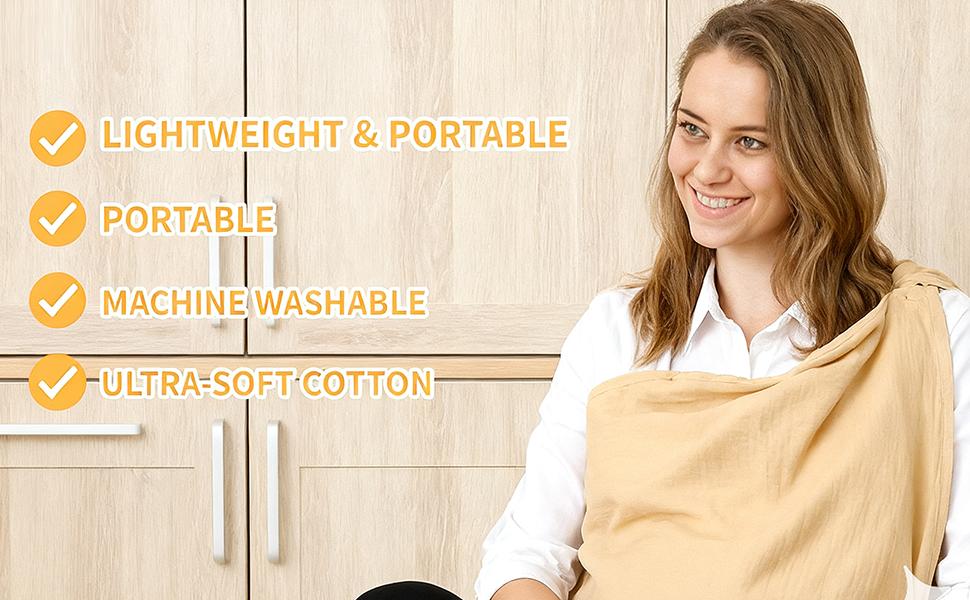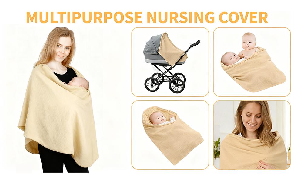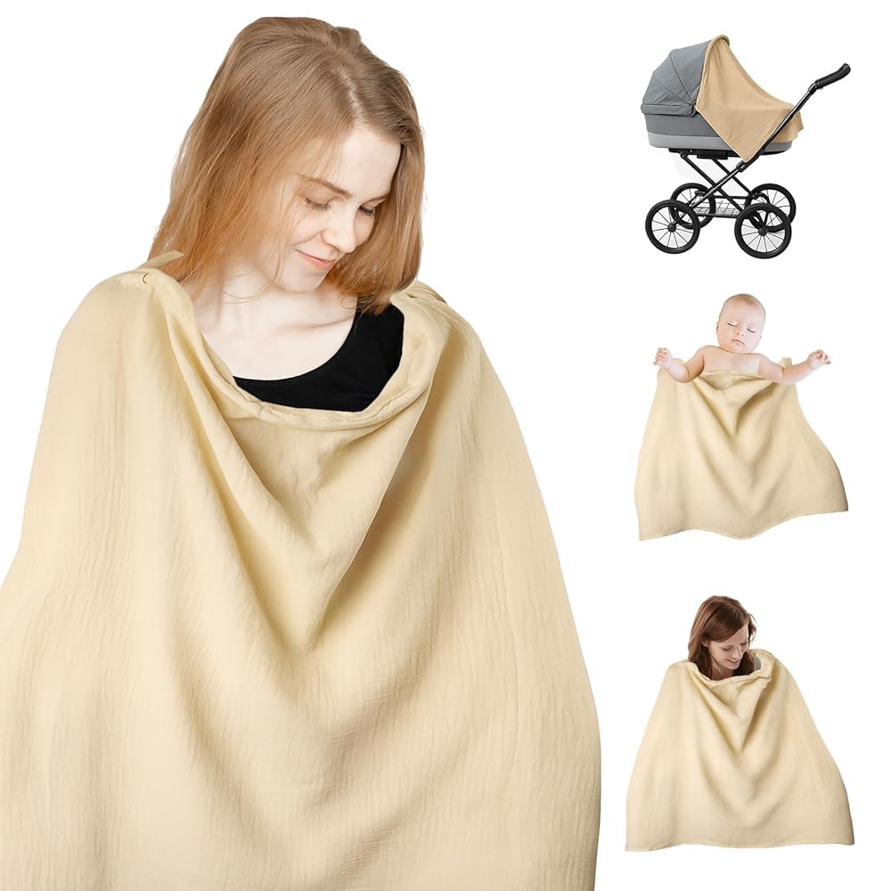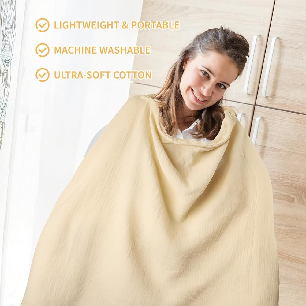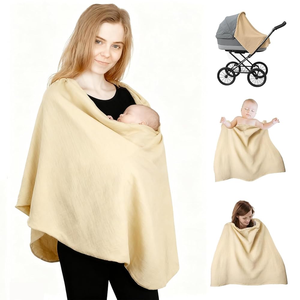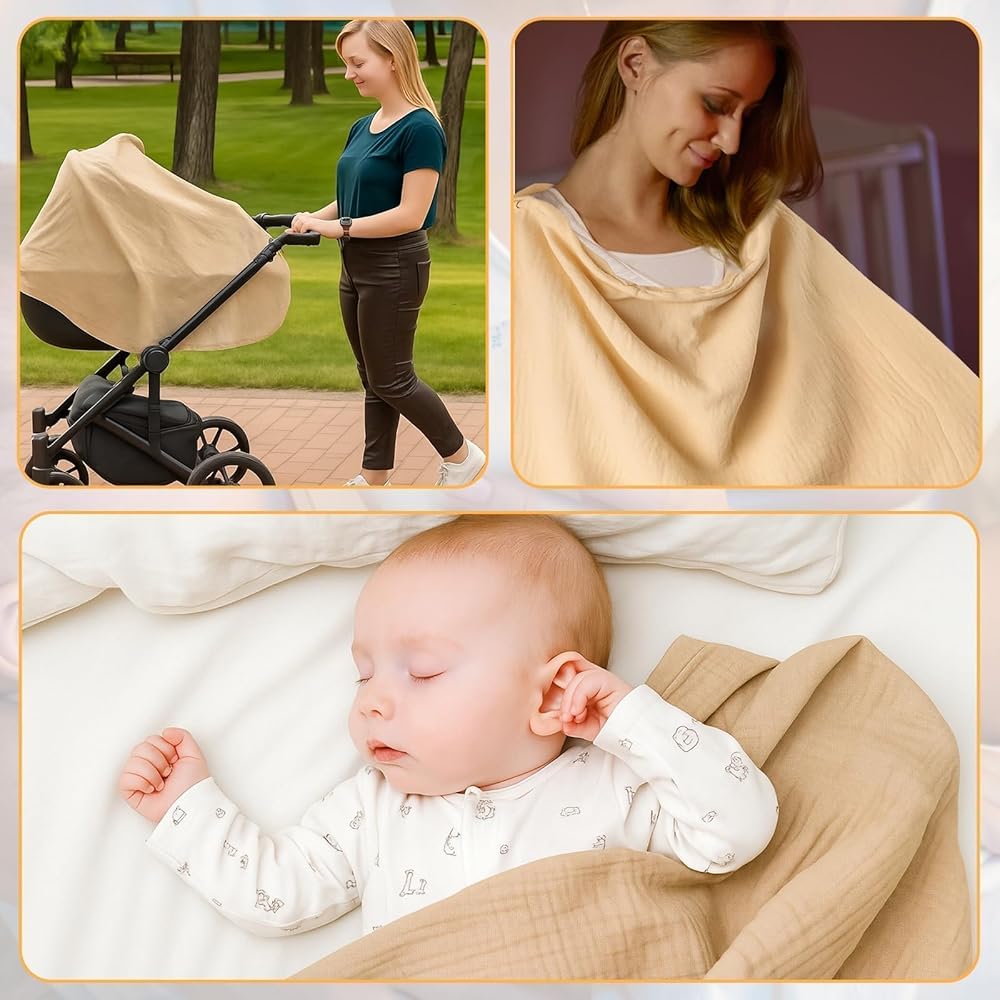 Soft Beige Cotton Nursing Cover Up for Breastfeeding (94X75cm) –:This Cotton nursing cover up for breastfeeding with a practical 94X75cm size, it balances ample coverage (to keep you private during nursing) and portability—no bulky feel, making it easy to carry or store whether you're at home or out and about.