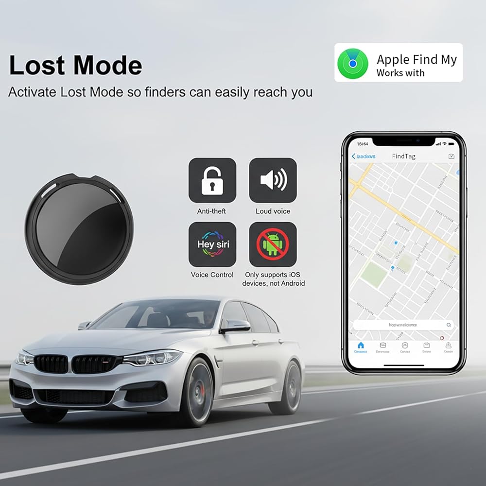 No Subscription GPS Tracker: Exclusively for Apple users (no Android), this mini car tracking device uses Apple's Find My network instead of cellular GPS. No SIM card, no monthly fee, and no extra app—just add it to Find My and start tracking instantly
