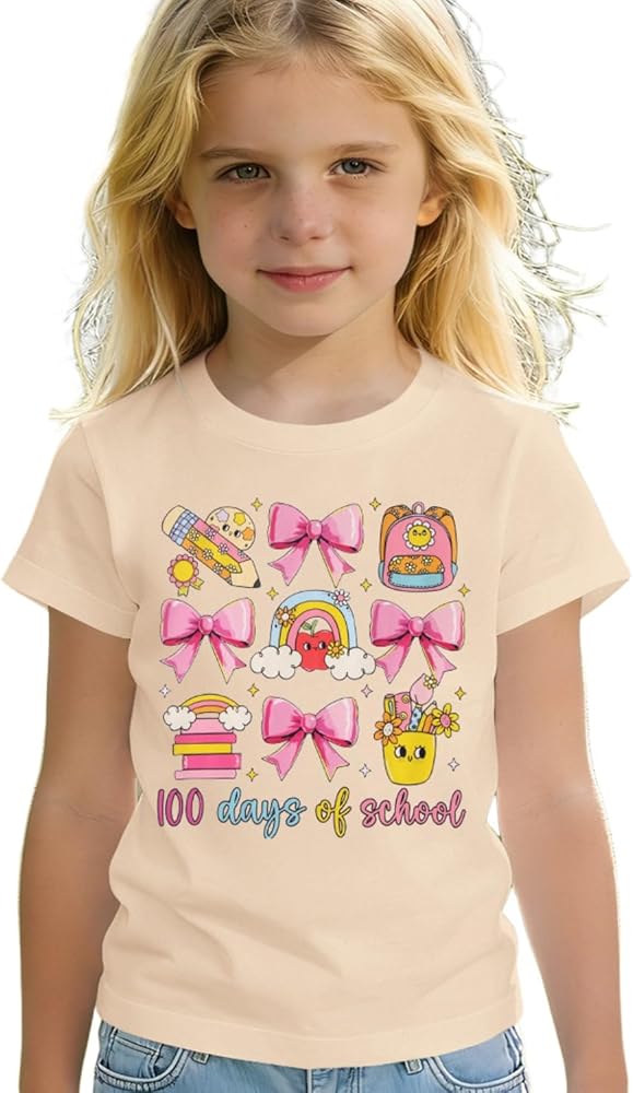🎒【Occasion】This toddler girl pink bow shirt, cute toddler girl cartoon t-shirt is perfect for classroom photo ops, 100-day activities, or showing off the milestone! The 100 days of school tops for girls is also great for regular school days, playdates, casual outings, or loungewear — easy to pair with jeans, shorts, or skirts!
