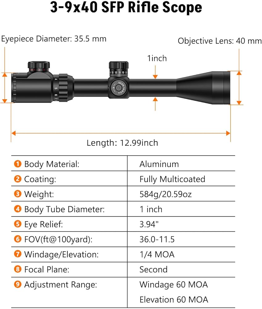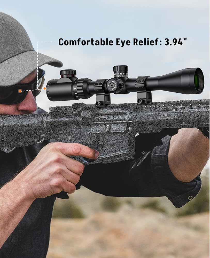 Clear Multi-coated Lens: The 3-9x rifle scope features anti-reflective green lenses, a 40mm objective lens, and a versatile 36-11.5ft field of view at 100 yards—great for sharp, delivering high light transmission in dawn/dusk