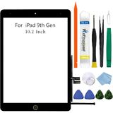 for iPad 9(9th Gen 2021 Released) Screen Replacement Digitizer Touch Glass, for iPad 10.2 Inch A2602 A2603 A2604 A2605, with Home Button & Full Repair Kit - Black