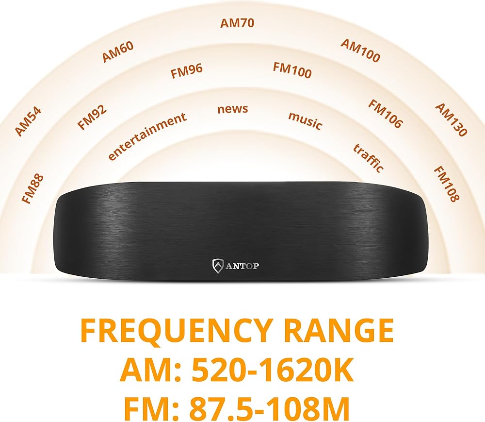 Sleek, Modern Design: Features a super-slim profile and a sophisticated black hairline finish.ATTENTION: this antenna only amplifies FM signal reception ,no AM signal