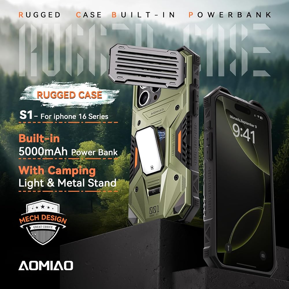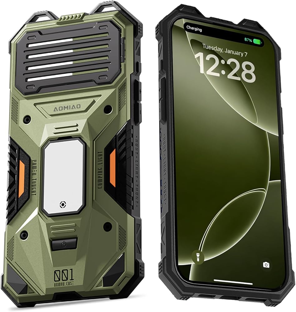 Applicable Scenarios: AOMIAO designed for iphone charging case is suitable for various outdoor scenarios. Equipped with a detachable magnetic light that provides convenient lighting at night. The lightweight lanyard design frees up your hands, making it easy to hang the device on backpacks, hooks, and other carriers, thus optimizing the outdoor carrying experience.