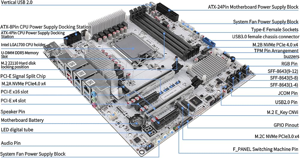 High Productivity: 4* desktop U-DIMM DDR5 RAM (it supports non-ECC and unbuffered-ECC memorry), MAX 128GB, 3* M.2 NVMe 2280/22110 size. Expandable to 12* SATA via 3* SFF-8643 cable we supplied, stable and ultra-fast transfer speed. 1* Type-C (USB3.2 10Gbps, Supports data transfer only), 4* USB3.2, 2* USB2.0