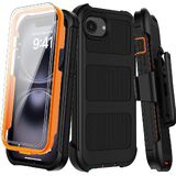 for iPhone 16e Case with Belt Clip Holster,Screen Protector X2,Heavy Duty Shockproof Drop Protection Military Grade 3 Layers Full Covered Rugged Durable Phone Cover for Apple 16e (Black Orange) in Kuwait