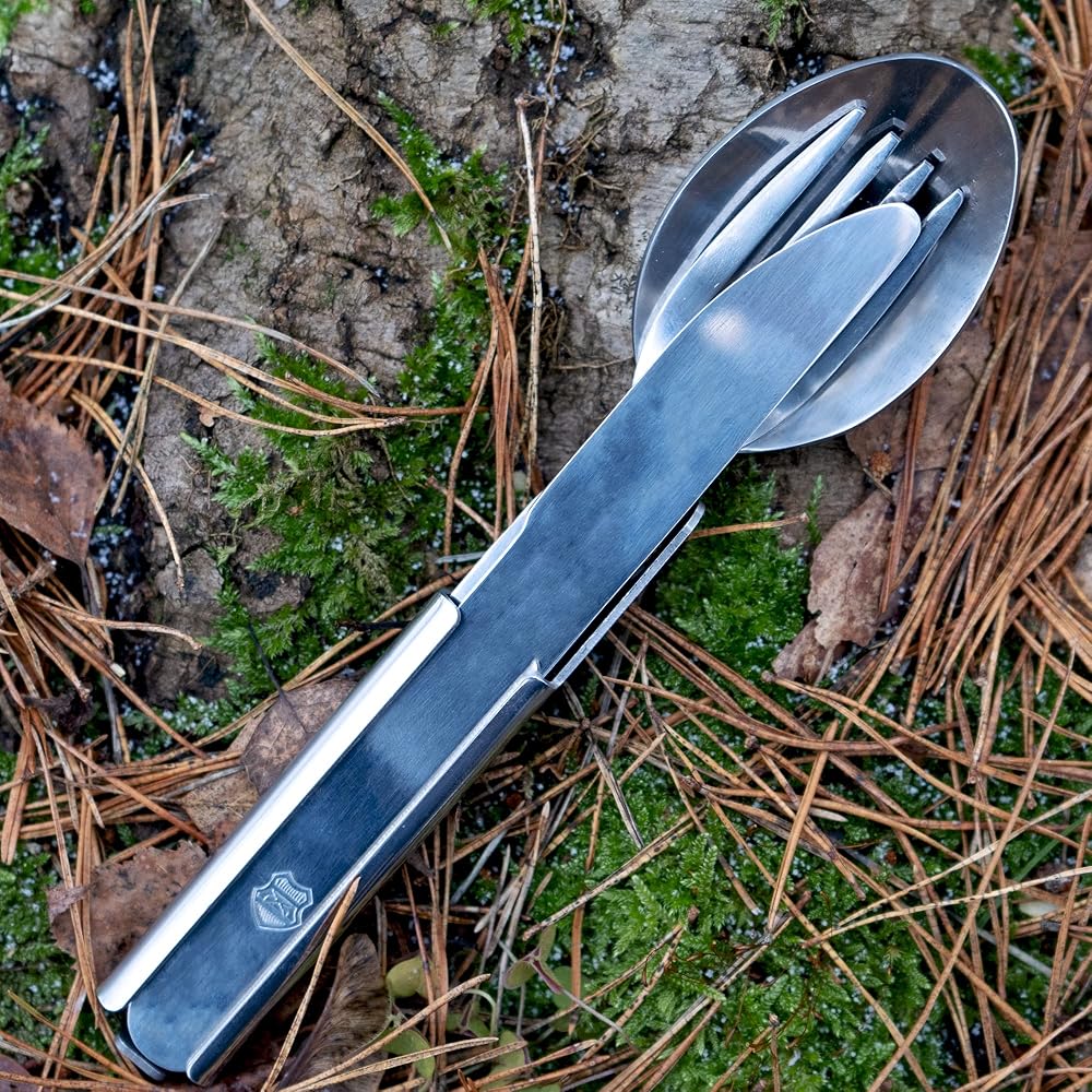 A MUST HAVE FULL-SIZED UTENSIL: Traditional military design tableware tested in army for years, perfect solution for students, scouts, travelers or bushcrafters eating with flimsy plastic cutlery