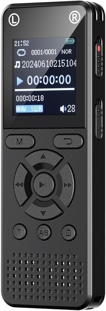 Large LCD Screen & Long Battery Life: The bright LCD screen clearly shows recording time, file format, and battery level. Enjoy extended recording sessions without frequent recharging.