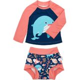 ALVA 2 Pcs Long Sleeve Rash Guard Swim Diaper Sets, Baby Toddler Swimsuit UPF 50+ Sun Protection for Boy and Girl