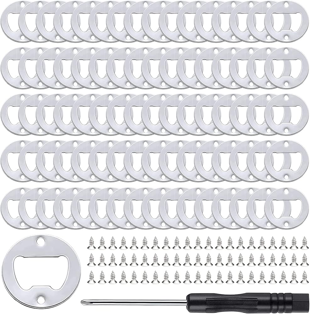 Package Information: You will receive 25 metal bottle opener inserts sizing about 1.57 inch in diameter, 50screws and a screwdriver for fixing in this package, which is adequate enough for making plenty bottle opener.