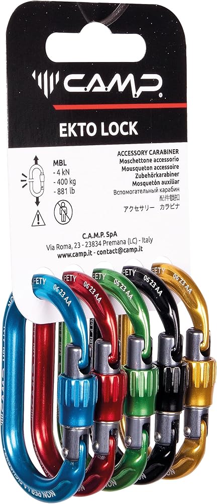 Set of 5 Ekto Lock screw carabiners in assorted colours